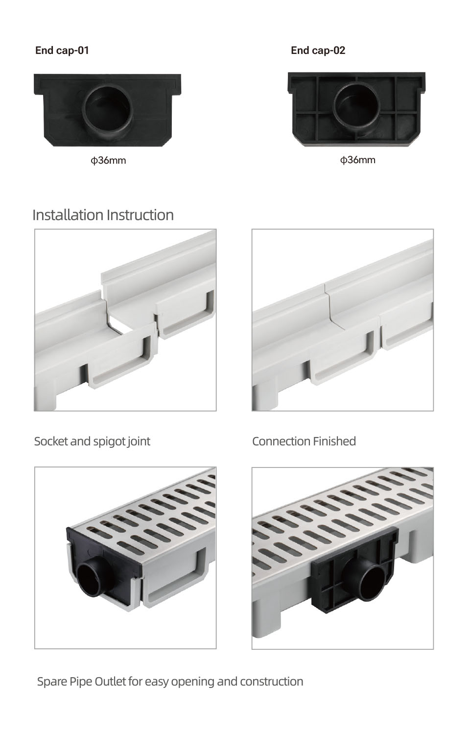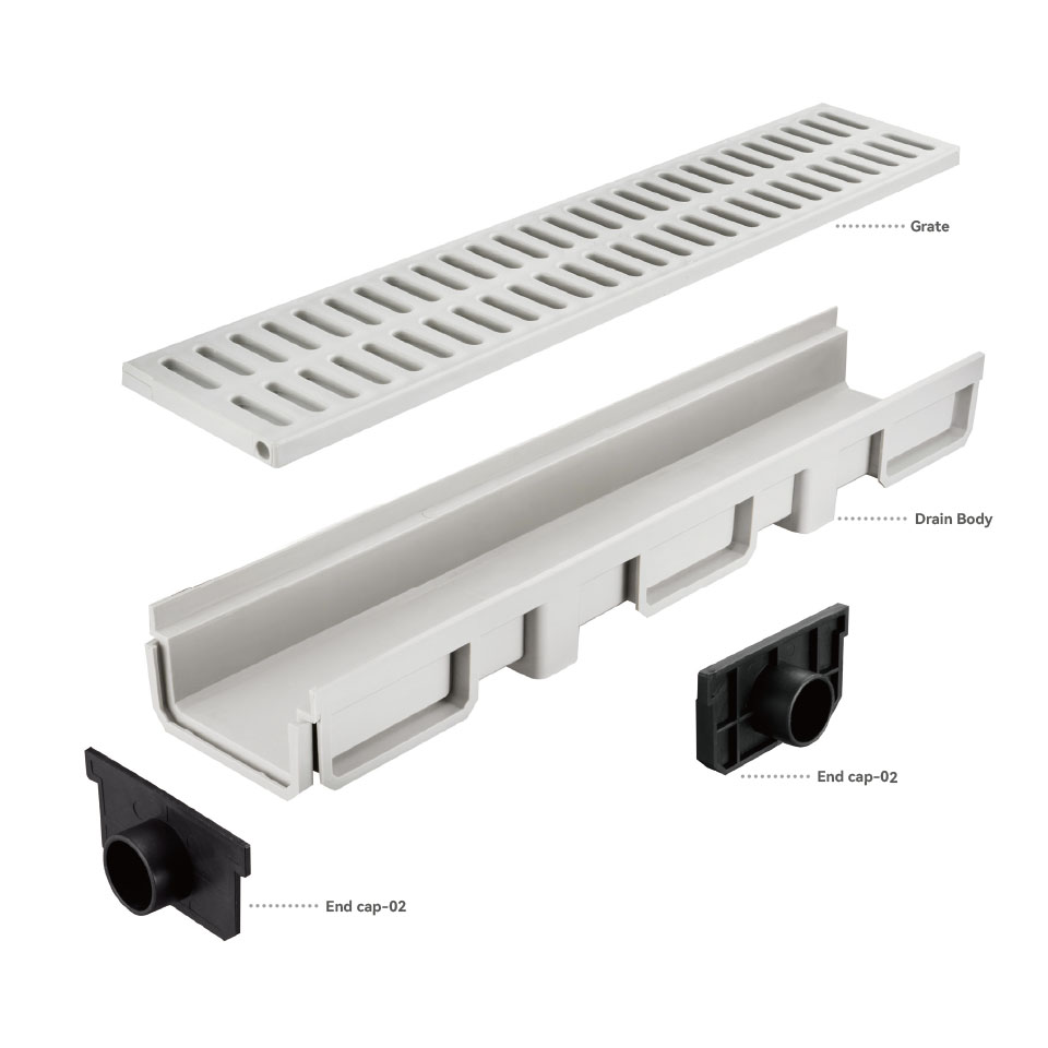Linear edge shower drain with horizontal outlet and PP siphon 50mm width series